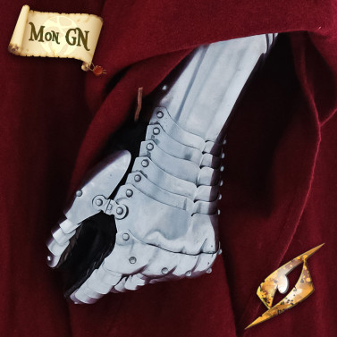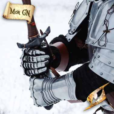 Montés sur une base souple en cuir et doublés d’un gant intégré cousu directement à la structure métallique, ils assurent confort, maintien et ajustement optimal grâce à des sangles en cuir réglables. Leur finition en acier poli et bords roulés leur confère un look authentique et brillant, idéal pour impressionner sur le champ de bataille ou lors de reconstitutions.