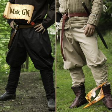 Que vous incarniez un troubadour, un aventurier, un paysan, un marchand ou un personnage de fantasy, ce pantalon constitue une base de tenue polyvalente, facile à assortir avec une tunique, une chemise, une ceinture en cuir et une paire de bottes. Disponible en plusieurs couleurs sobres et historiques — Marron foncé, Beige sable et Noir — et en plusieurs tailles, il s’adapte à de nombreux styles et contextes de jeu ou de spectacle.