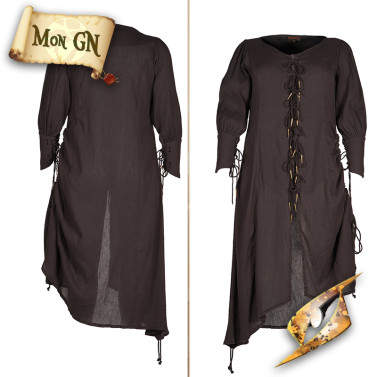 Son design simple mais réfléchi vous permet de jouer sur les styles : pirate en détresse, villageoise médiévale, sorcière gothique ou aventurière en goguette. Grâce à son laçage ajustable à l'avant et sur les côtés, vous pouvez moduler la silhouette à volonté, pour un effet près du corps ou ample et aérien. Les manches longues, légèrement froncées aux poignets, apportent un équilibre visuel qui enrichit l'esthétique globale.